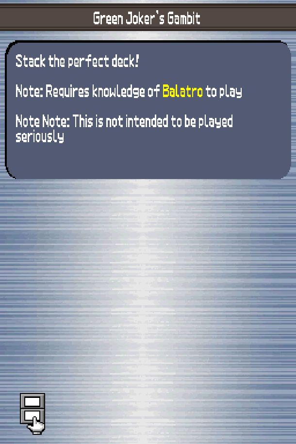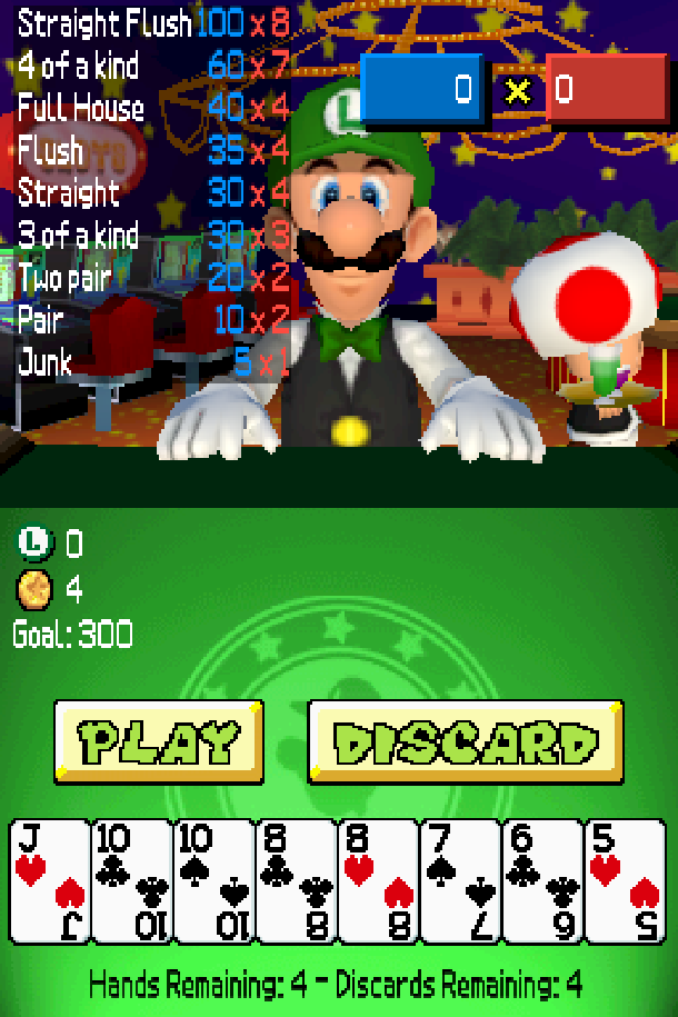 Originally intended as a personal exercise for me to learn how a Balatro-style game would be implemented, I saw a meme online comparing it to Luigi's Picture Poker and decided to roll with the idea.